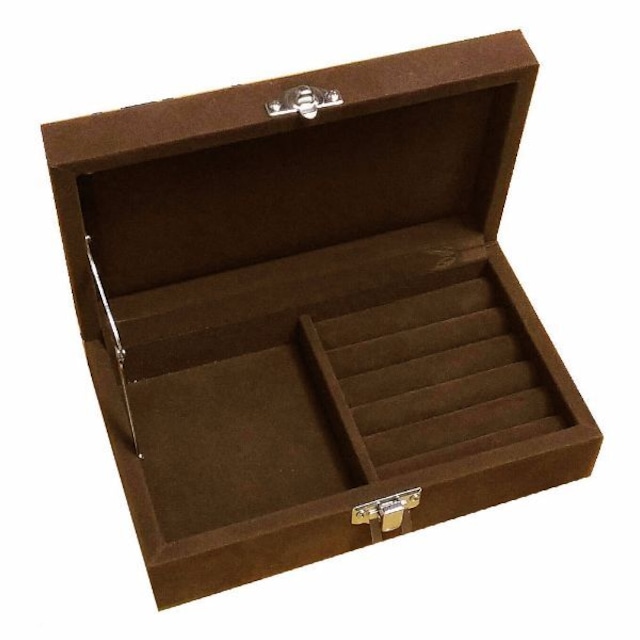 ジュエリーボックス/ジュエリーケース セパレートタイプ ジュエリーケース プレゼントにも最適♪ c-h-61b ジュエリー・アクセサリーを保管するのに便利な セパレートタイプのジュエリーケース。 増え続けるジュエリー達の指定席。 豊富なアクセサリーを取り出しやすく整理できる ジュエリー収納ボックス。 指輪収納やリング・指輪やピアスなど 細かく整理収納できます。 ベルベットの高級感と大人になっても変わらない 子供心をくすぐられるような宝箱のイメージ。 ご購入用にはもちろんですが、店頭での展示用、 接客用、商談用にもお使いいただけます。 サイズ・容量 【サイズ】約170x105x50mm 【素材】ベルベット 【色・カラー】ブラウン・茶色 完売の商品でもご希望数量をご用意できる 場合がございますので、お気軽に お問い合わせください。 弊社では、迅速で確実な商品の発送を 心掛けておりますが、 誠に申し訳ございませんが、一部の商品に つきましては発送までに2〜4週間の お時間を頂戴する場合が ございますことを、ご了承ください。 掲載商品の画像に関しまして、 ご覧になっている環境により、 実際の色と異なる場合が御座います。 予めご了承ください。 背景の小物等は撮影の為のイメージですので 商品には含まれません。 サイズについて 若干の誤差は予めご了承ください。