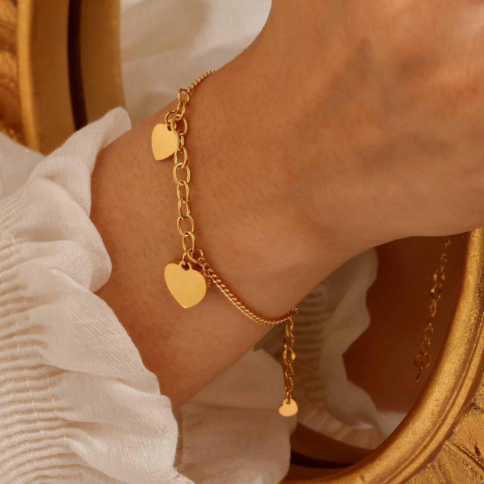 ステンレスブレスレット HeartDesignBracelet ハートデザイン 手元コーデ EverydayWristStyle 大人可愛い 毎日つけたい MinimalChicBracelet 手元を華やかに アクセサリー好きと繋がりたい ElegantWristCandy